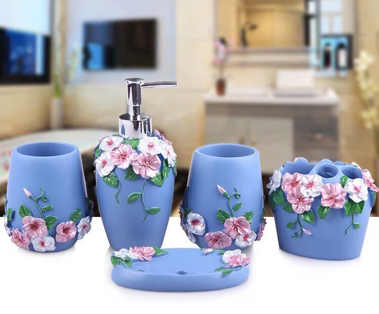 バスルームセット 洗面用具 5点セット ソープディスペンサー 歯ブラシスタンド 石鹸置き コップ