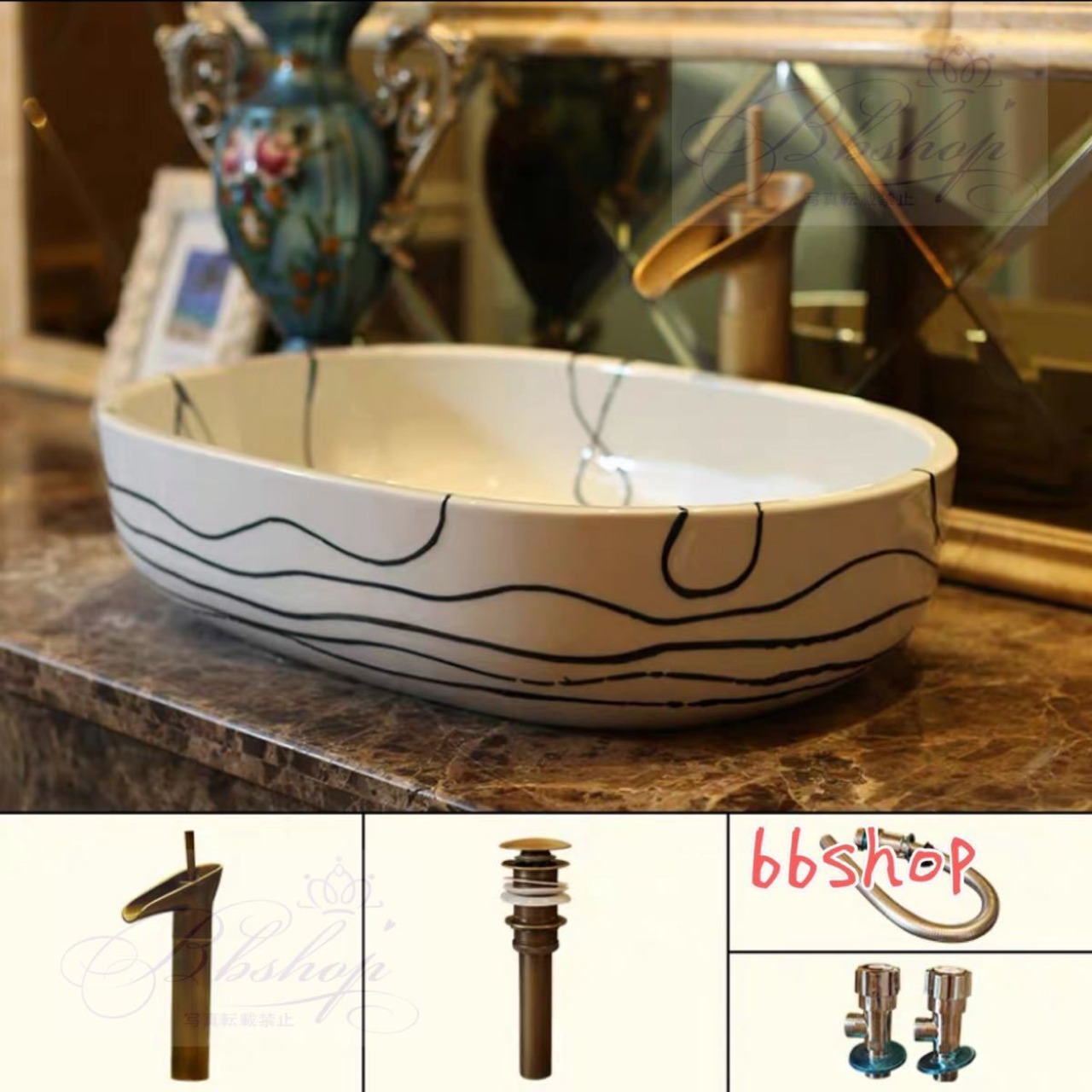 洗面ボール 高級洗面台 洗面ボウルセット .陶器 手水鉢 手洗器 手洗い鉢 洗面器 蛇口 排水金具付き
