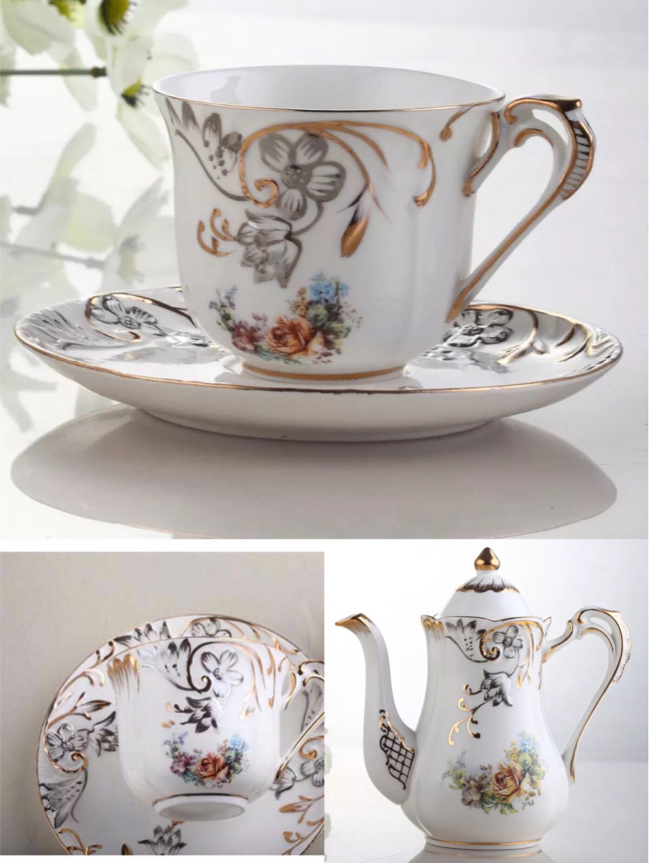 ティー・コーヒーカップセット カップ&ソーサー6客セット 花柄豪華カップ 姫系雑貨 陶磁器ティーセット