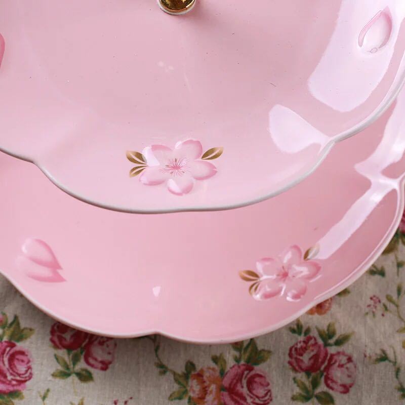 ケーキ スタンド プレート 2段セット アフタヌーンティー フルーツ トレー 皿 桜柄