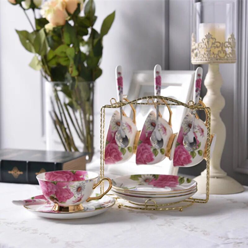 ティー・コーヒーカップセット カップ&ソーサー4客セット 姫系雑貨 .バラ花柄