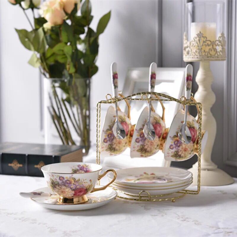ティー・コーヒーカップセット カップ&ソーサー4客セット 花柄豪華カップ 姫系雑貨 陶磁器ティーセット