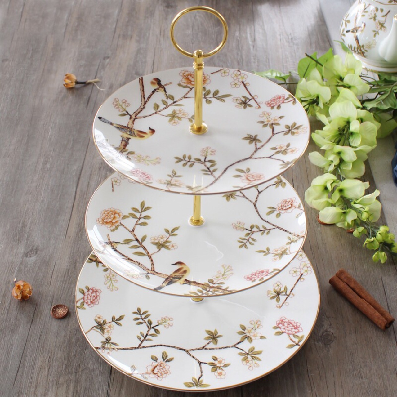 ケーキ スタンド プレート 3段セット アフタヌーンティー フルーツ トレー 皿 花柄