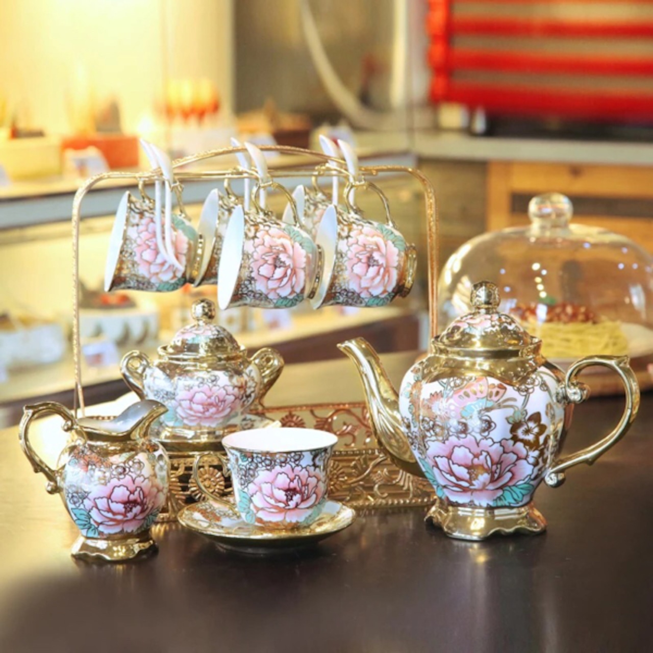 ティー・コーヒーカップセット カップ&ソーサー6客セット 花柄 姫系雑貨 上品 陶磁器ティーセット
