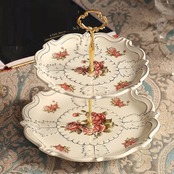 ケーキ スタンド プレート 2段セット アフタヌーンティー フルーツ トレー 皿.薔薇柄