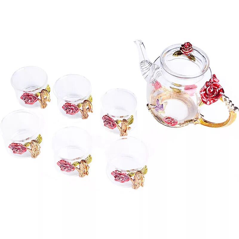 ティー・コーヒーカップセット カップ&ソーサー4客セット ガラスカップセット 花柄姫系雑貨