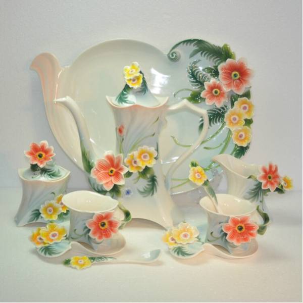 ティー・コーヒーカップセット カップ&ソーサー4客セット 花柄豪華カップ 姫系雑貨 上品 陶磁器ティーセット