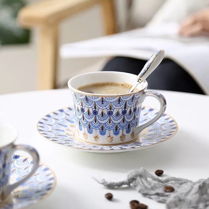 西洋ティー・コーヒーカップセット カップ&ソーサー4客セット .花柄豪華カップ 陶磁器ティーセット