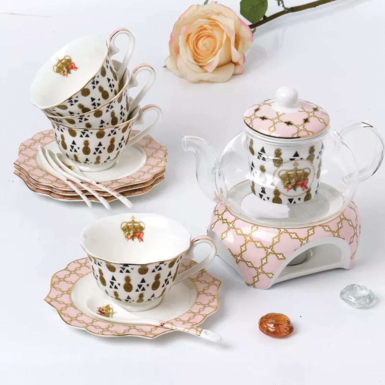 ティー・コーヒーカップセット カップ&ソーサー4客セット 花柄 豪華カップ 姫系雑貨 陶磁器ティーセット
