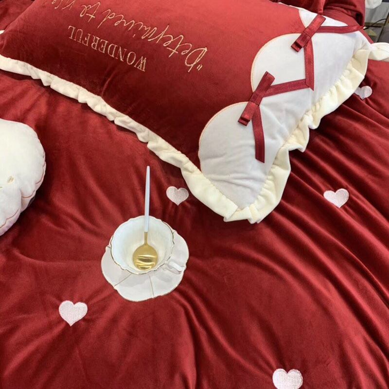 BS10冬用フランネル寝具 ワイドダブル ベッド用品4点セット ボックスシーツ