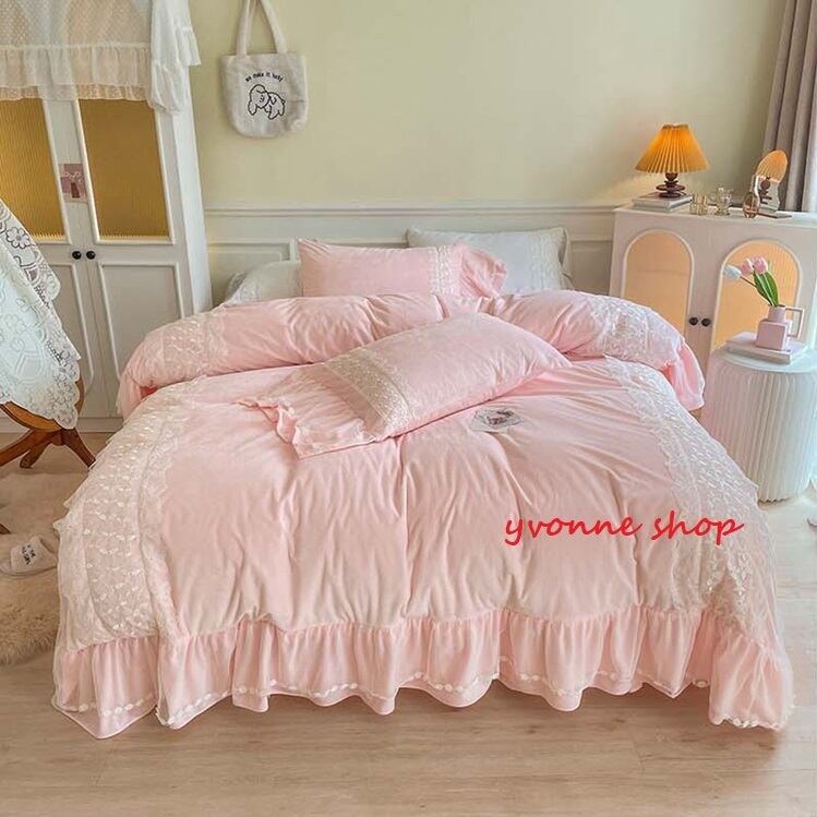 BS12冬用フランネル寝具 ワイドダブル ベッド用品4点セット ボックスシーツ ピンク