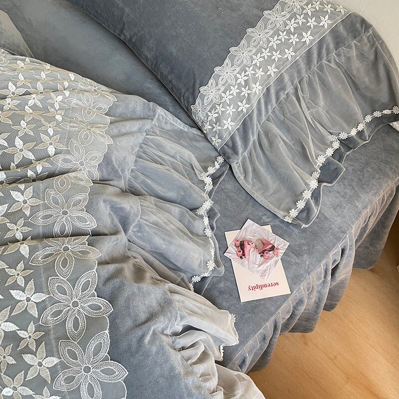 BS12冬用フランネル寝具 ワイドダブル ベッド用品4点セット ボックスシーツ