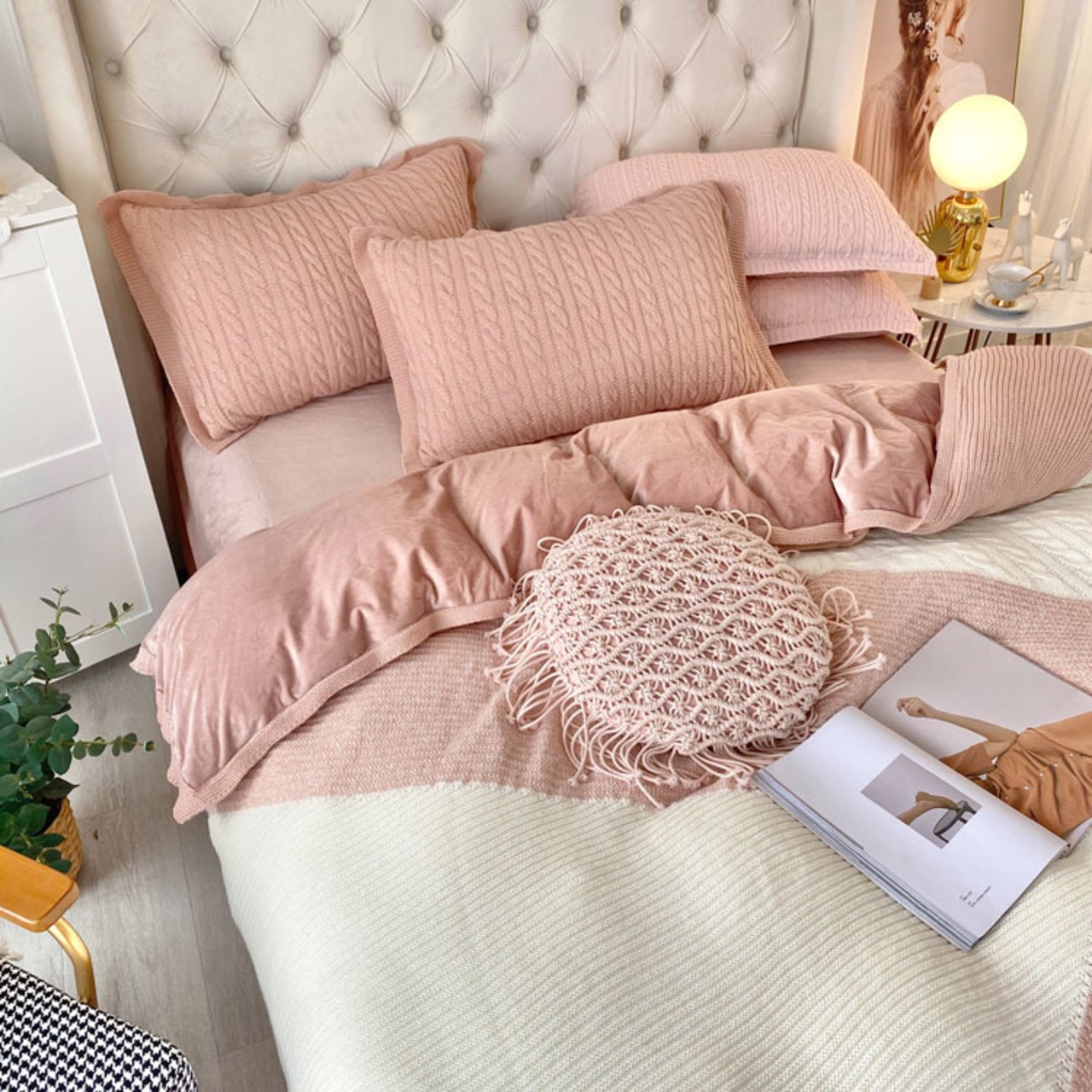 BS15冬用フランネル寝具 ワイドダブル ベッド用品4点セット ボックスシーツ