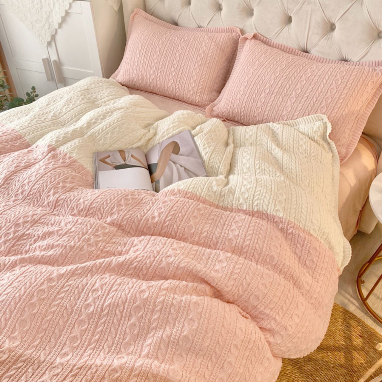 BS15冬用フランネル寝具 ワイドダブル ベッド用品4点セット ボックスシーツ ピンク