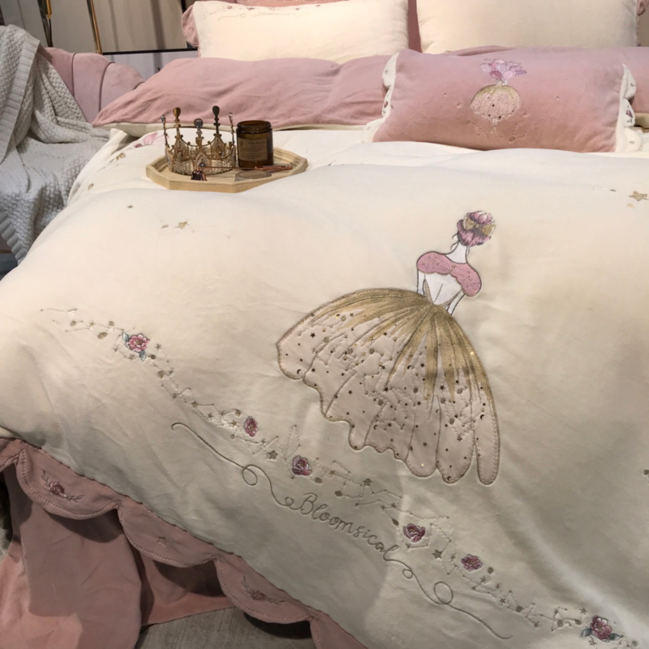 BS17冬用フランネル寝具 ワイドダブル ベッド用品4点セット ボックスシーツ