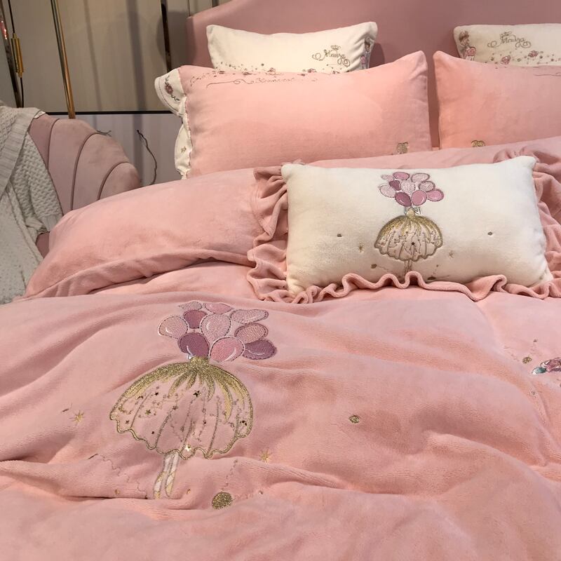 BS17冬用フランネル寝具 ワイドダブル ベッド用品4点セット ボックスシーツ ピンク