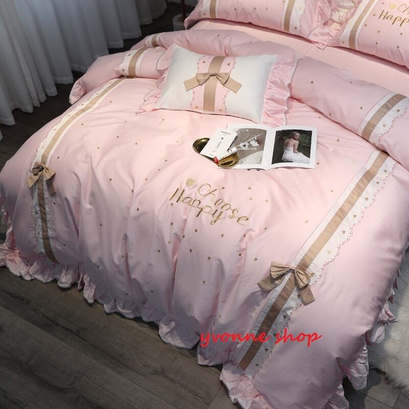 BS寝具 ワイドダブル ベッド用品4点セット ボックスシーツ ピンク