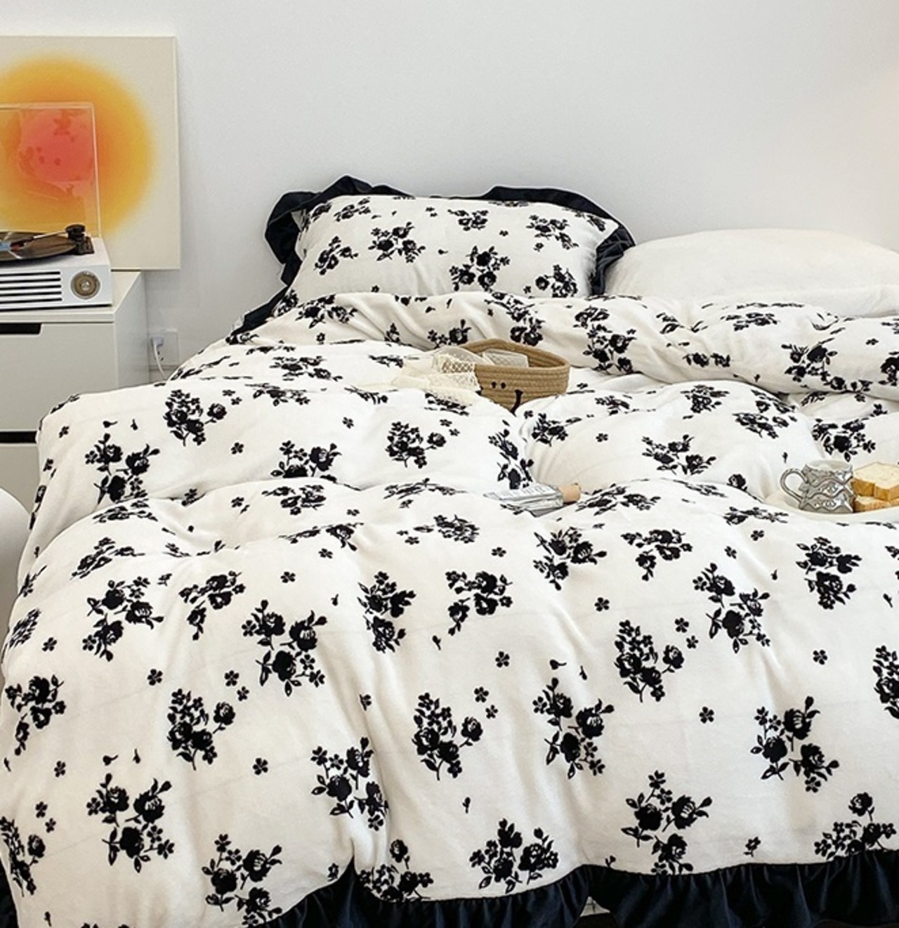 BS19冬用フランネル寝具 ワイドダブル ベッド用品4点セット ボックスシーツ