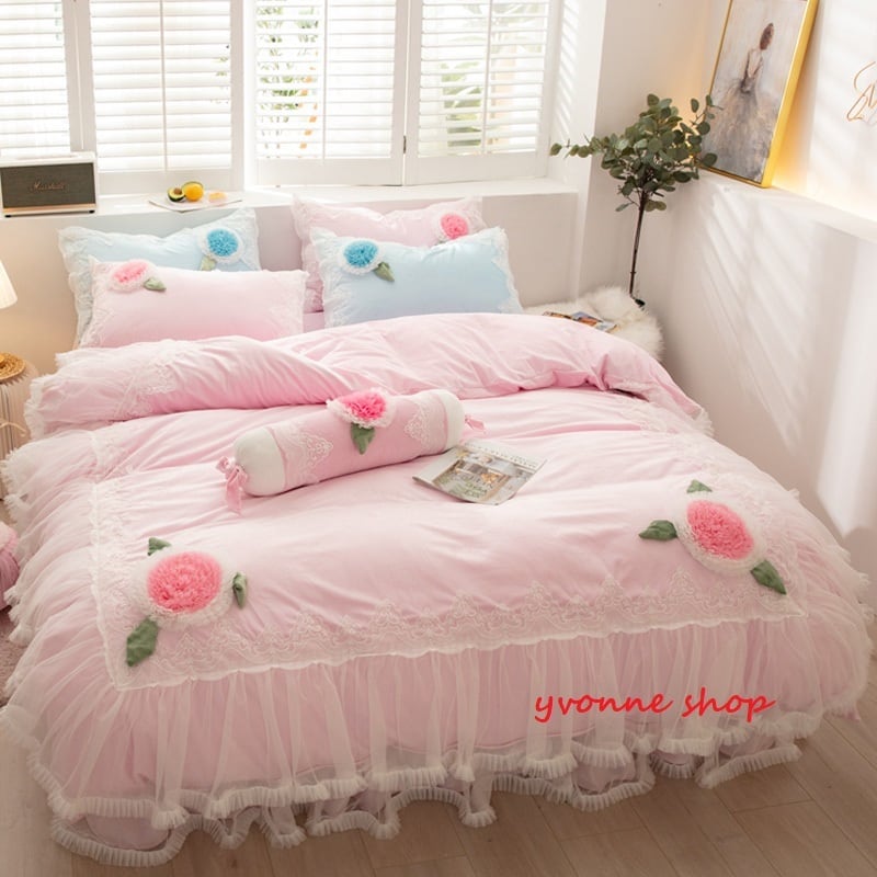 BS23冬用フランネル寝具 ワイドダブル ベッド用品4点セット ボックスシーツ ピンク