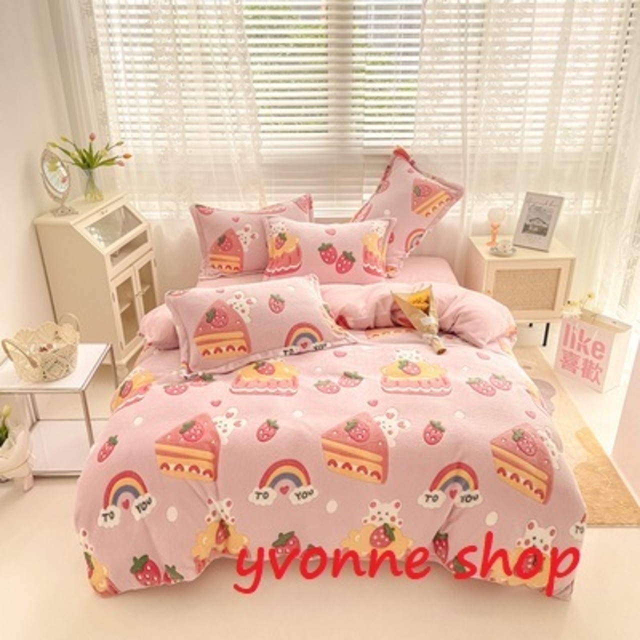 BS31冬用フランネル寝具 ワイドダブル ベッド用品4点セット ボックスシーツ ピンク