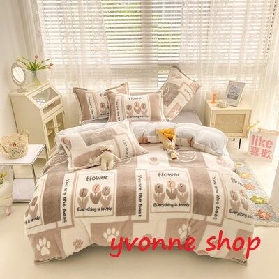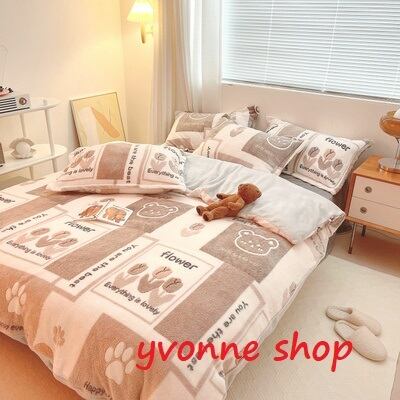 BS31冬用フランネル寝具 ワイドダブル ベッド用品4点セット ボックスシーツ