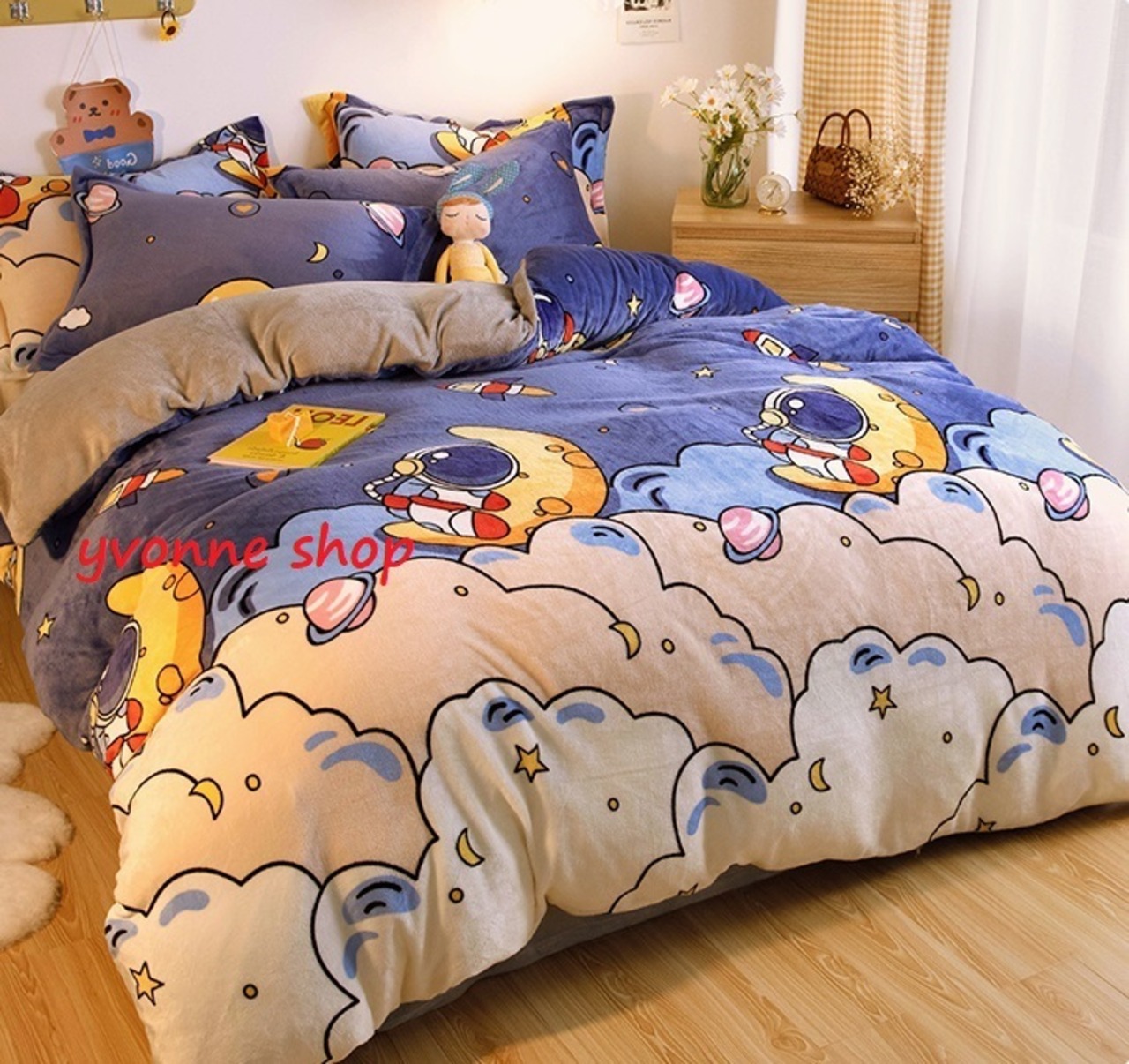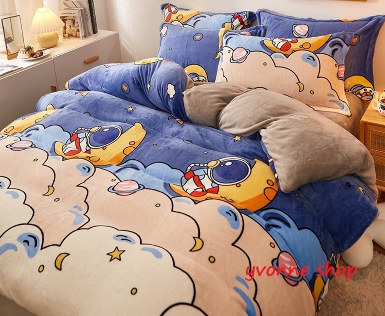 BS32冬用フランネル寝具 ワイドダブル ベッド用品4点セット ボックスシーツ