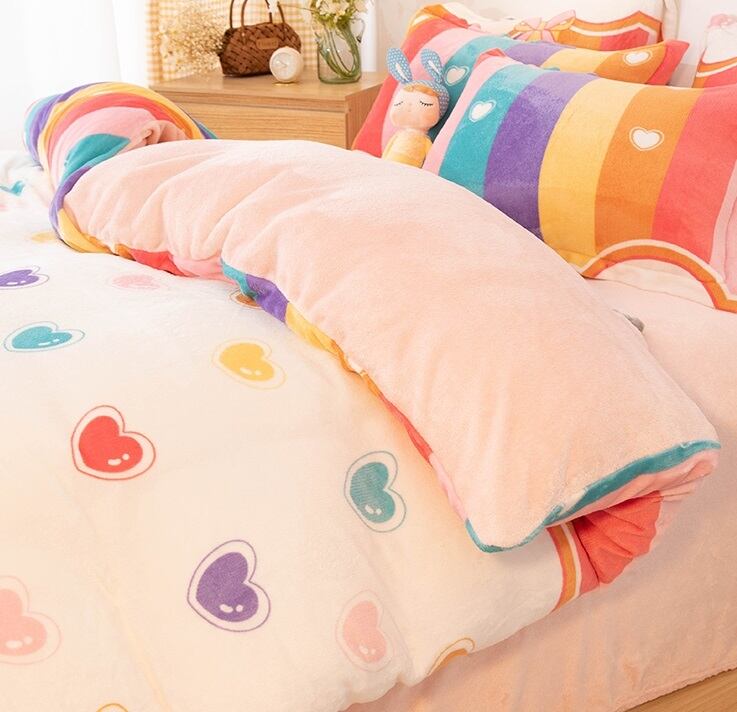 BS32冬用フランネル寝具 ワイドダブル ベッド用品4点セット ボックスシーツ