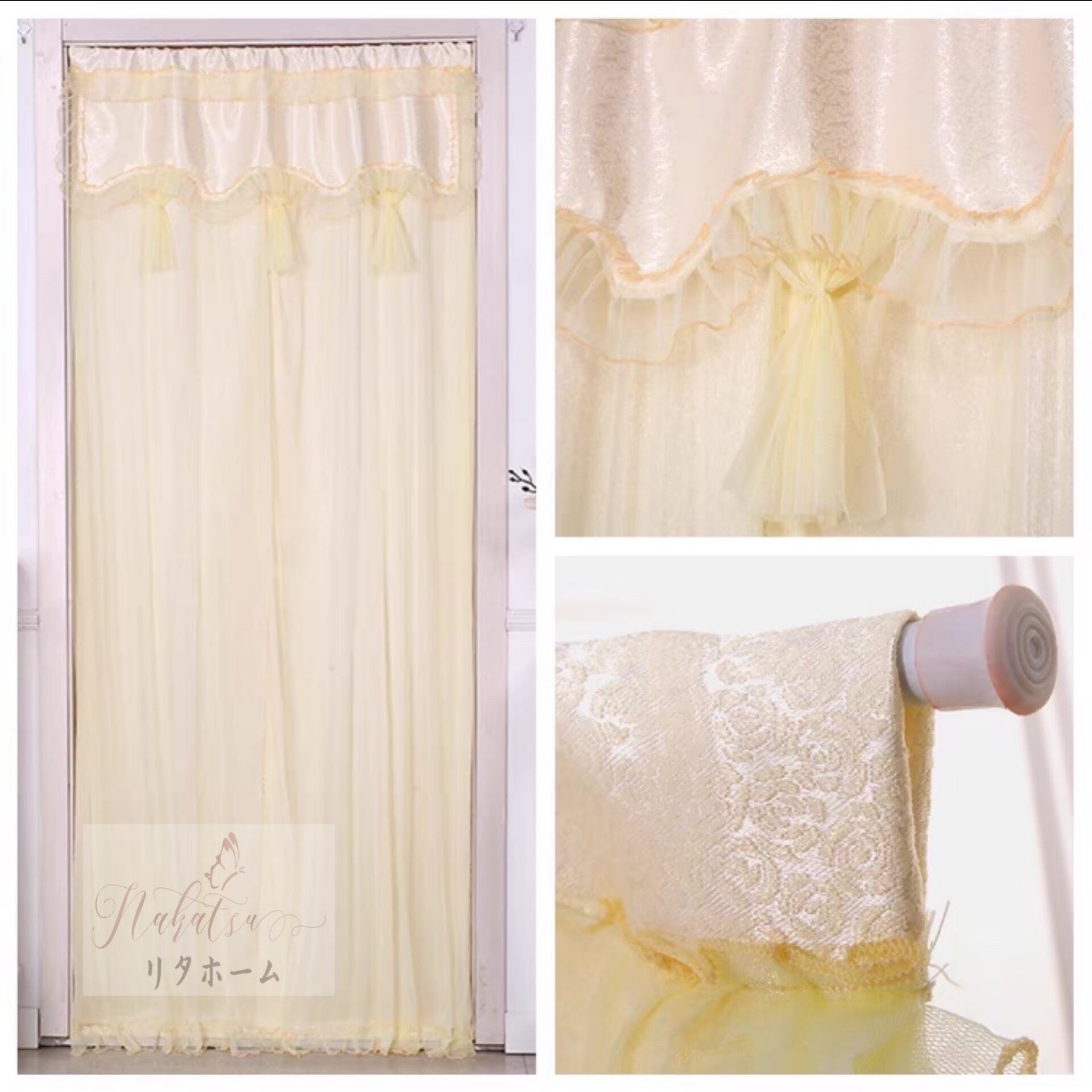 のれん ロング レース フラワー柄 .姫系二重タイプ 暖簾 間切り レース 姫系雑貨 90x200